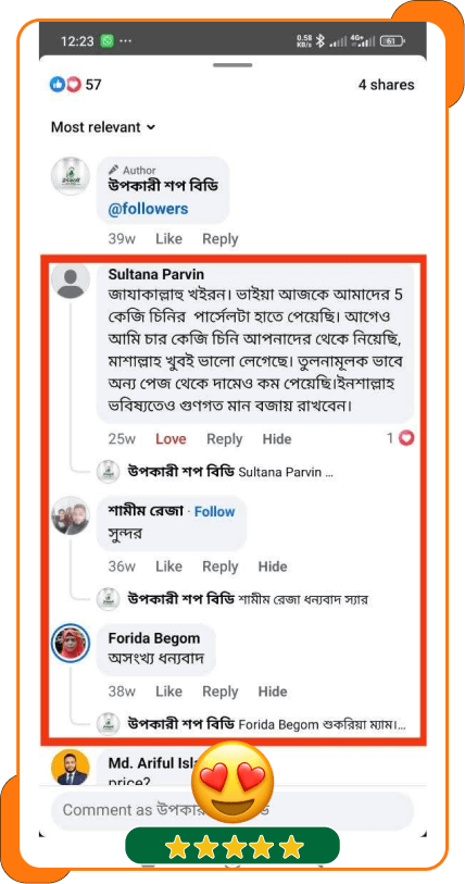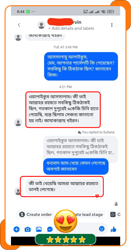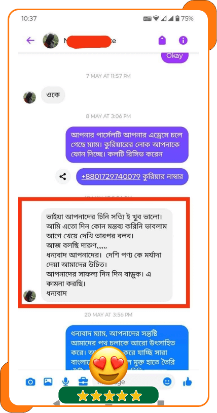 🥰 চিনি হাতে পাওয়ার পর অনুভূতি/পরামর্শ জানার জন্য আমাদের একজন প্রতিনিধি যোগাযোগ করে থাকেন।